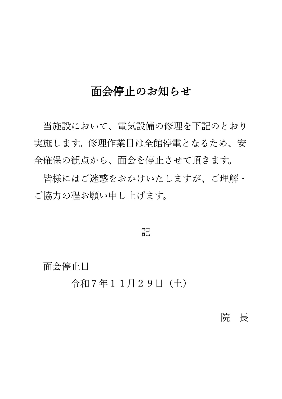 面会停止のお知らせ